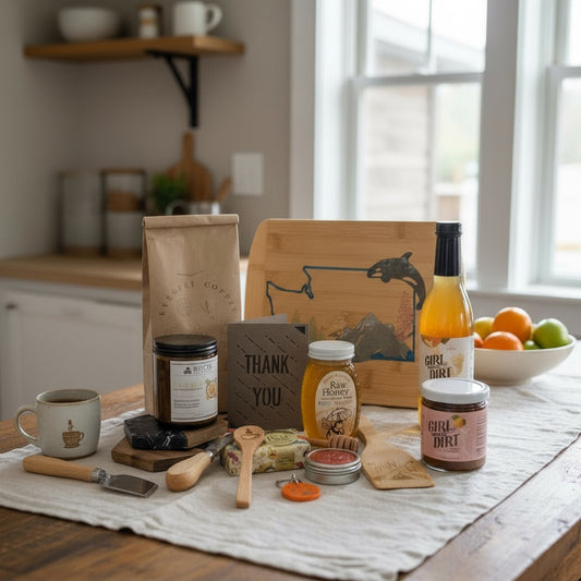 We amplify the value and local flavor by partnering exclusively with other Kitsap County artisans and makers to include high-end gourmet preserves, specialty coffee, handcrafted soaps, luxury candles, and local honey.