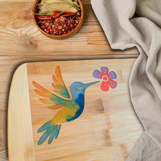 THE BLENDED OASIS - Bamboo Cutting Board - PNW Pacific Northwest Epoxy Resin Designs (Hummingbird) - Epoxy Resin Inlay