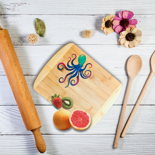 THE BLENDED OASIS - Bamboo Cutting Board - Marine Life Epoxy Resin Designs (Octopus 1) - Epoxy Resin Inlay