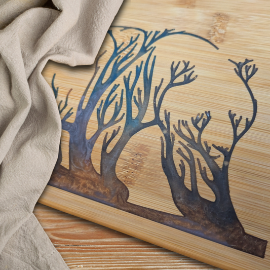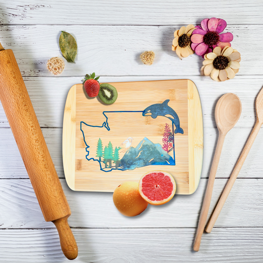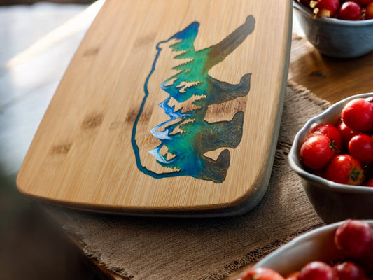 THE BLENDED OASIS - Bamboo Cutting Board - PNW Pacific Northwest Epoxy Resin Designs (Sasquatch) - Epoxy Resin Inlay