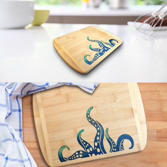 THE BLENDED OASIS - Bamboo Cutting Board - Marine Life Epoxy Resin Designs (Tentacles Blue) - Epoxy Resin Inlay