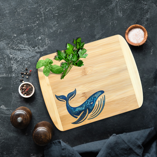 THE BLENDED OASIS - Bamboo Cutting Board - Marine Life Epoxy Resin Designs (Whale 1) - Epoxy Resin Inlay