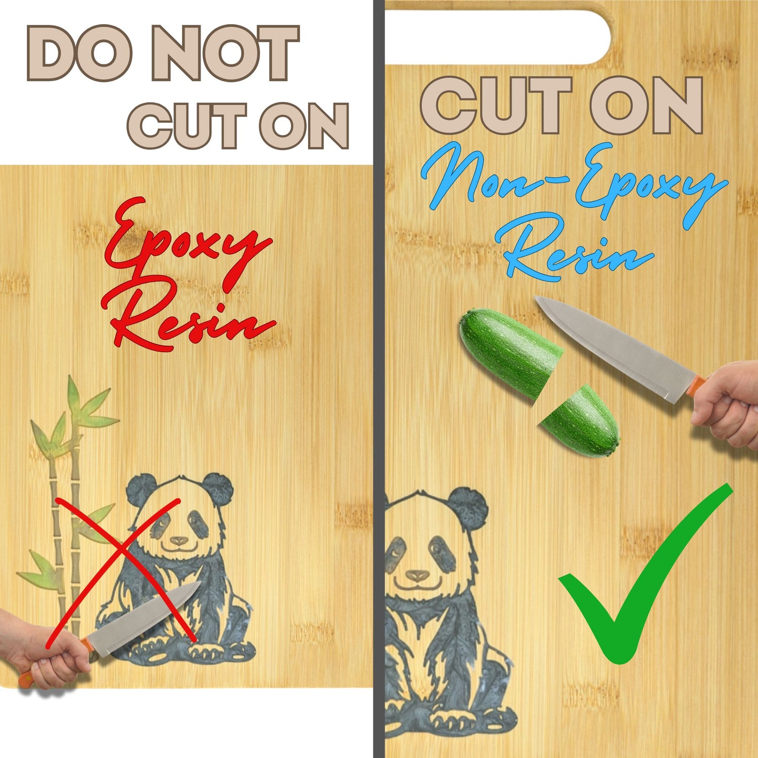 When using your cutting board, keep in mind the design and materials. Boards with laser engravings can be used for cutting directly on the surface without worry. However, if your board features epoxy resin, avoid cutting on the resin areas as it’s similar to etching into glass. For resin boards, stick to cutting on the wooden sections or the back side. Rest assured, all materials, including epoxy resin, are food-grade and safe for everyday use.