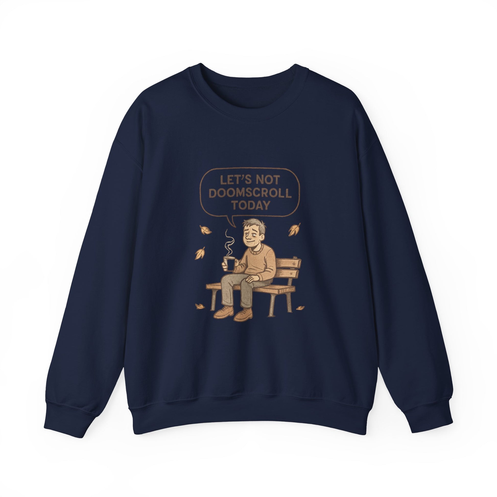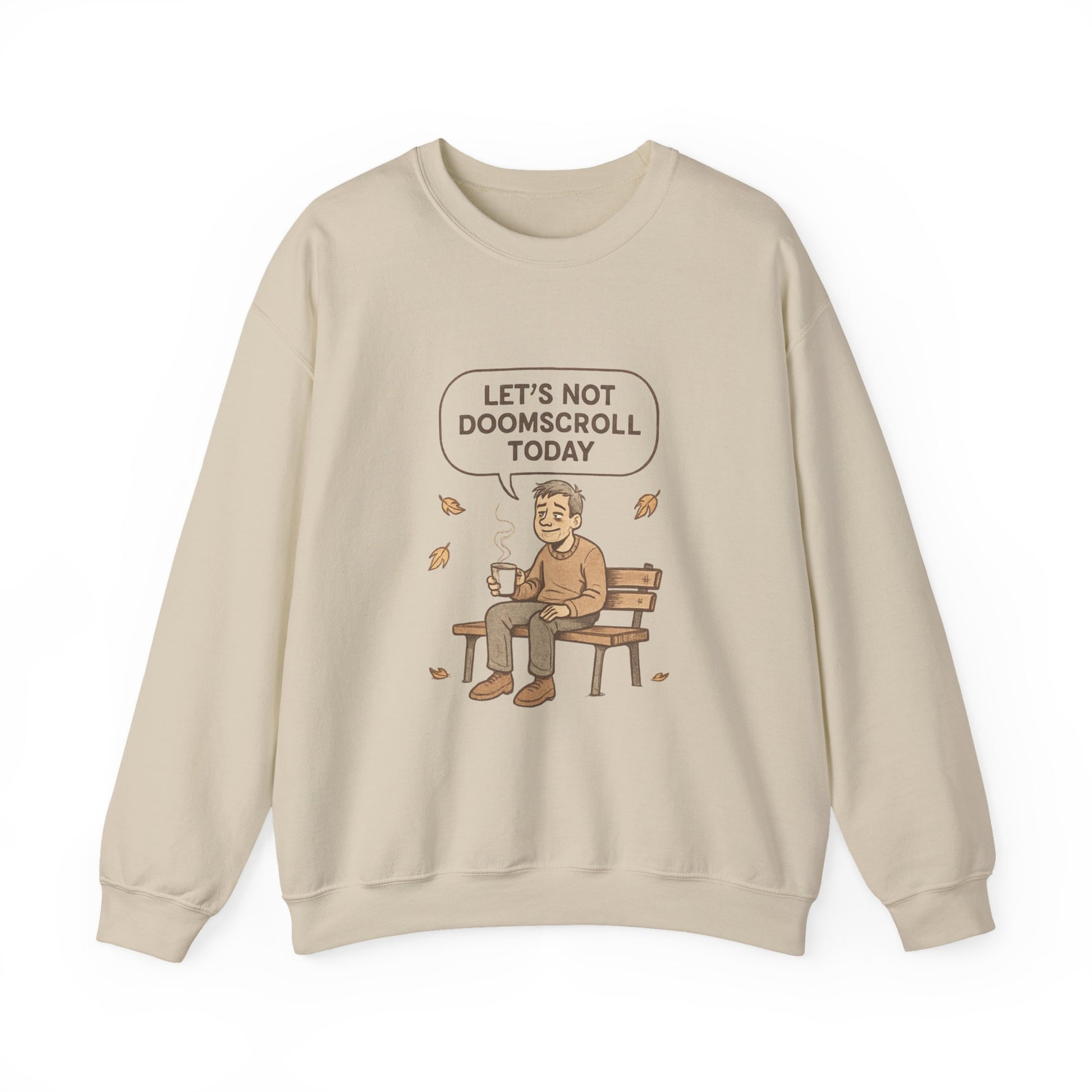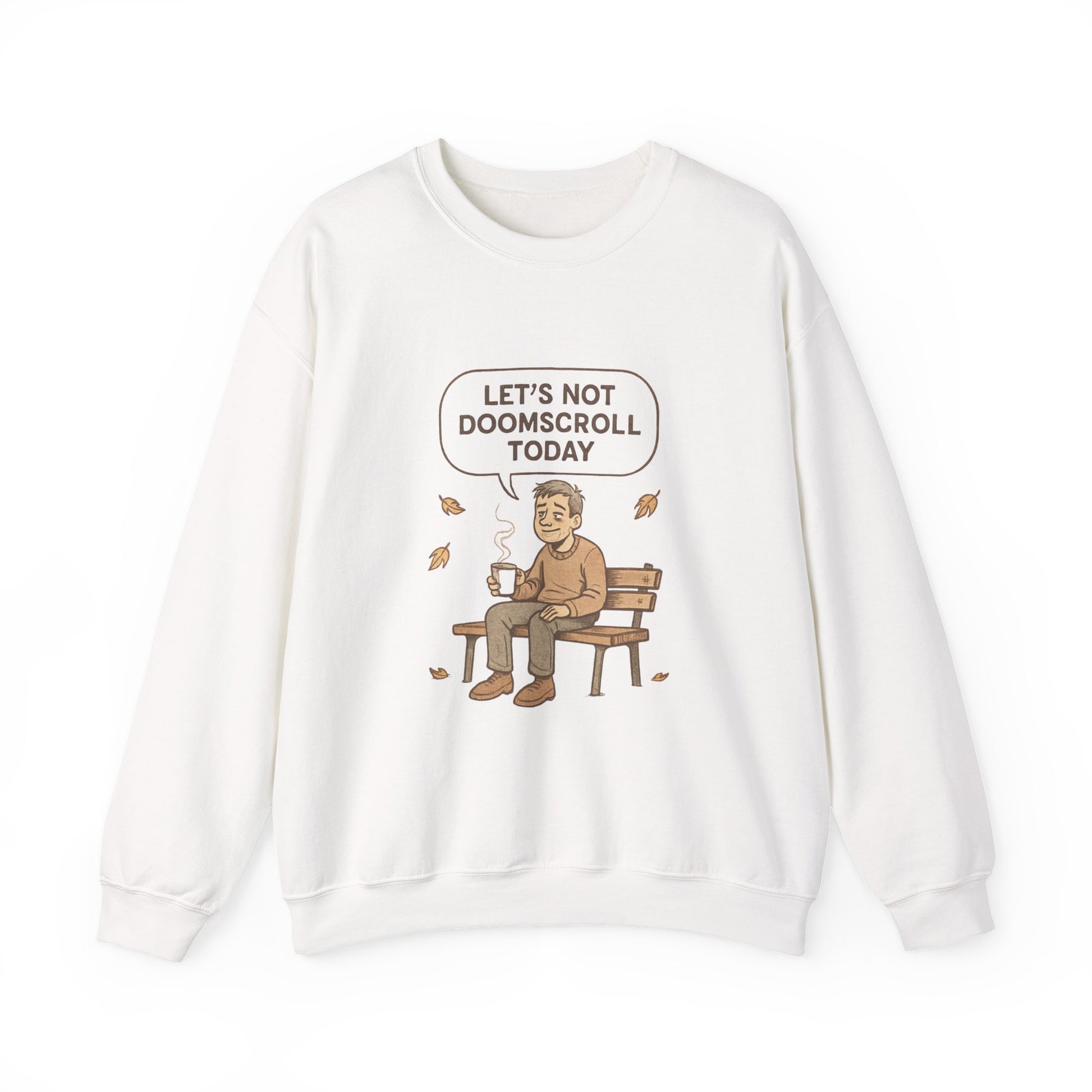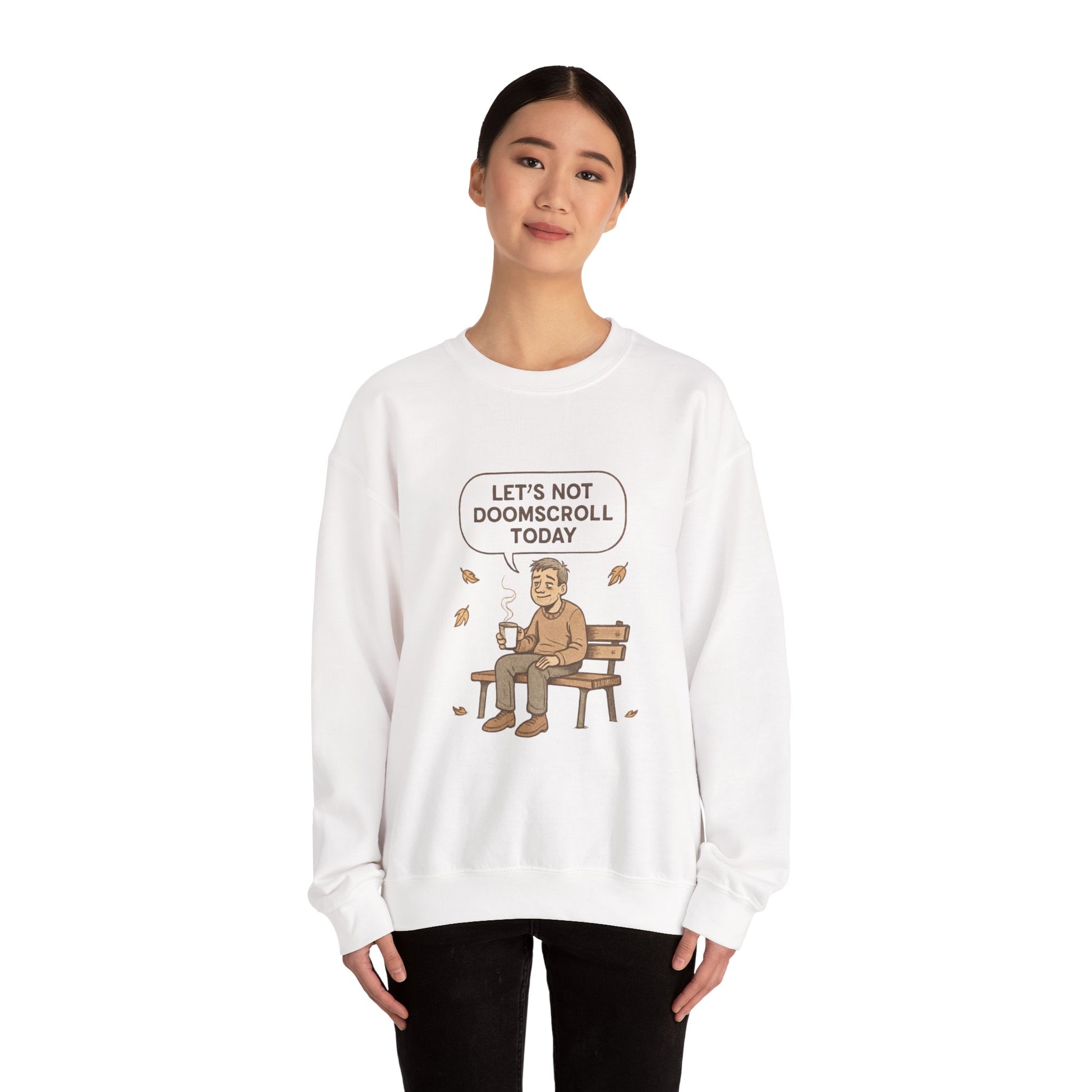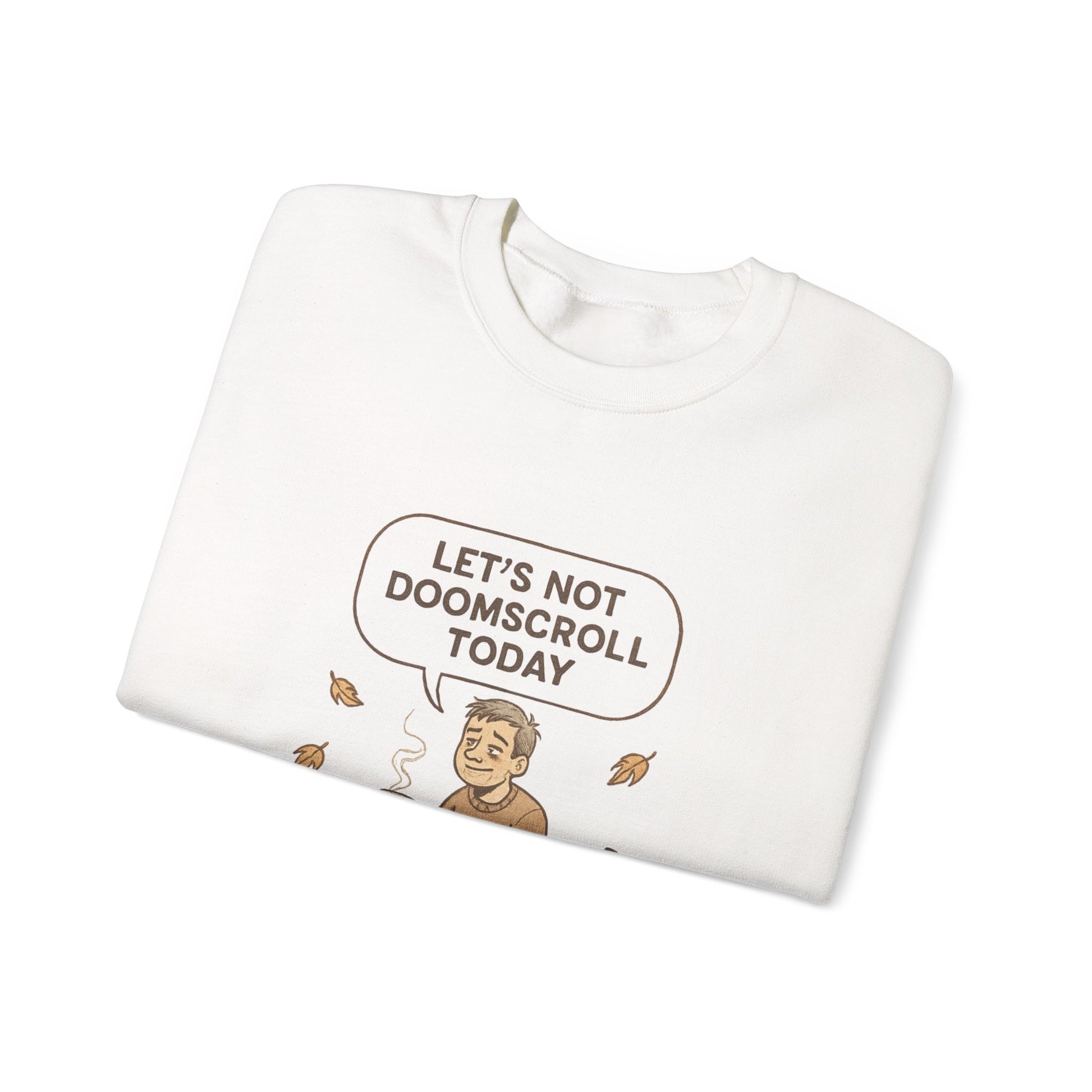 Crewneck Sweatshirt — "Let’s Not Doomscroll Today" Cozy Anti-Doomscroll Graphic Pullover