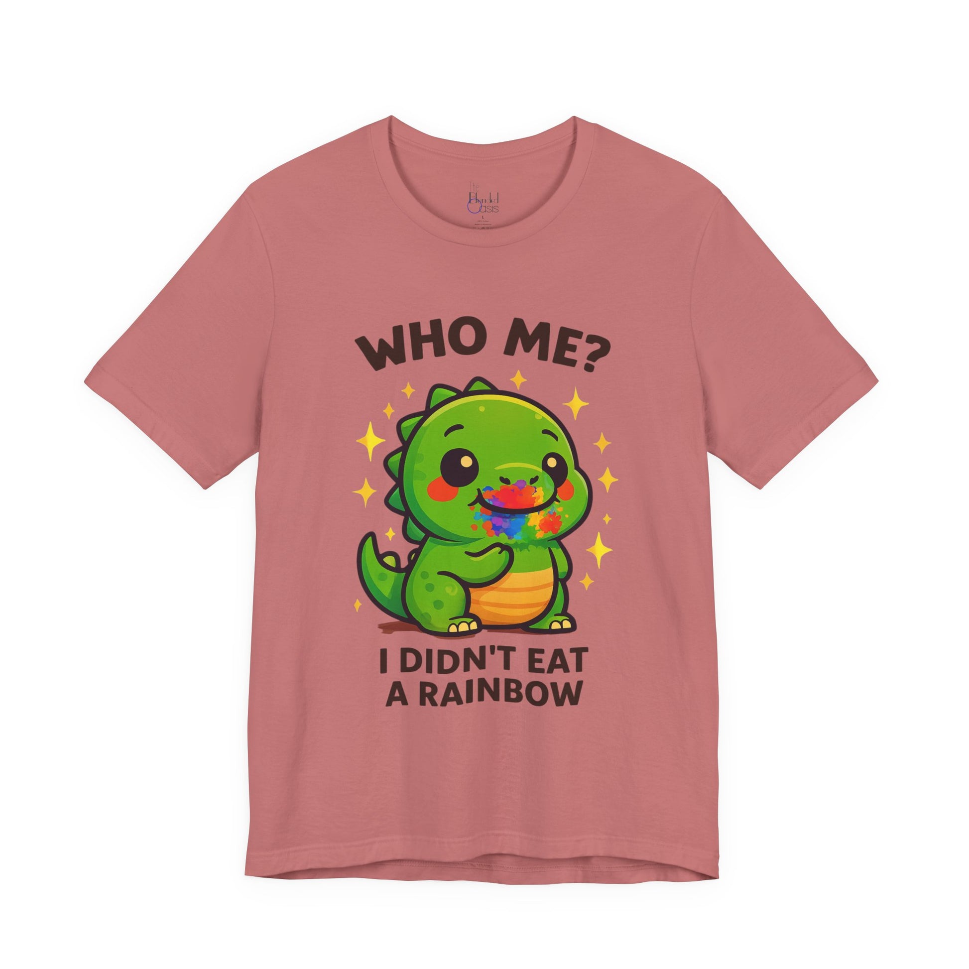 Cute Dinosaur Graphic Tee - "Who Me? I Didn't Eat a Rainbow"