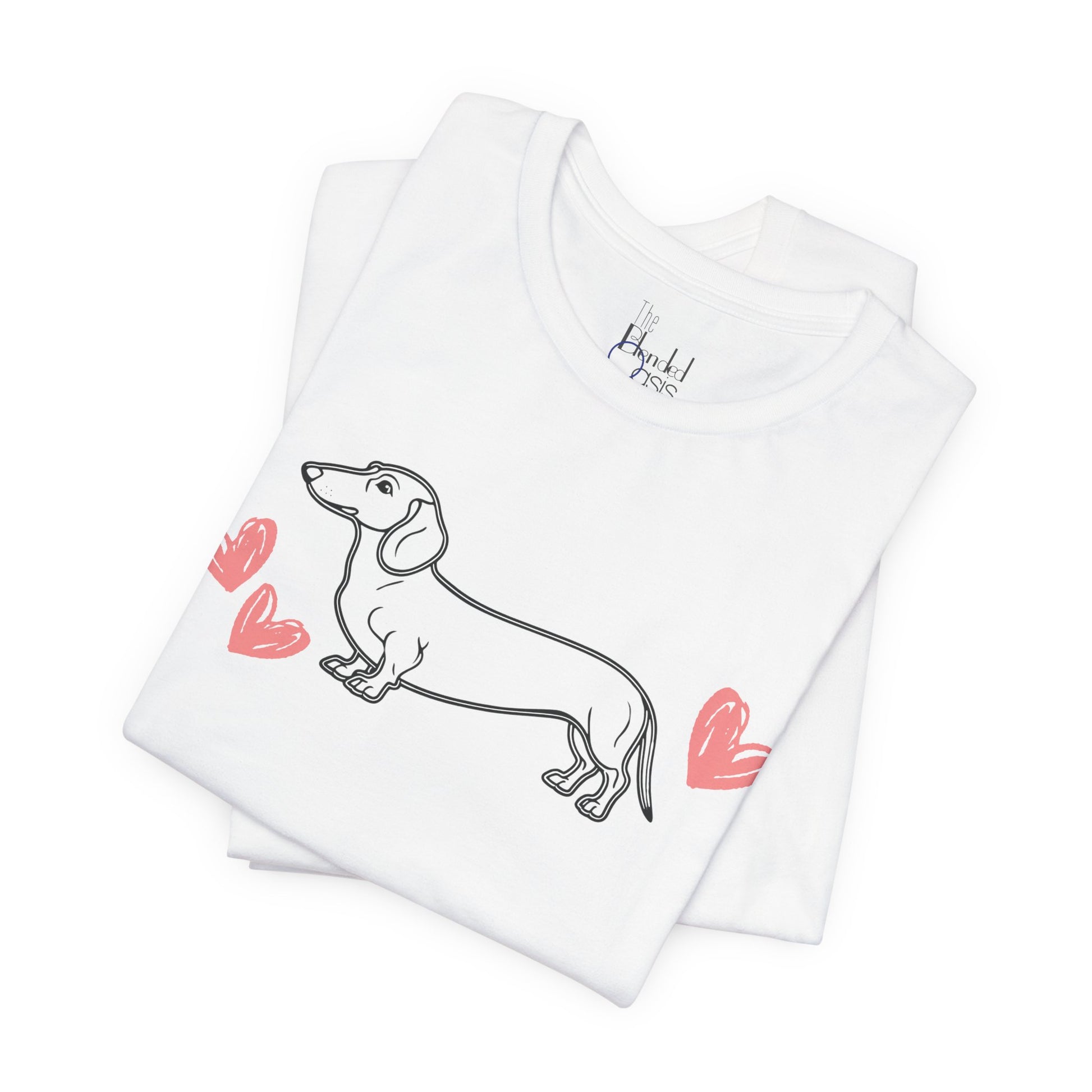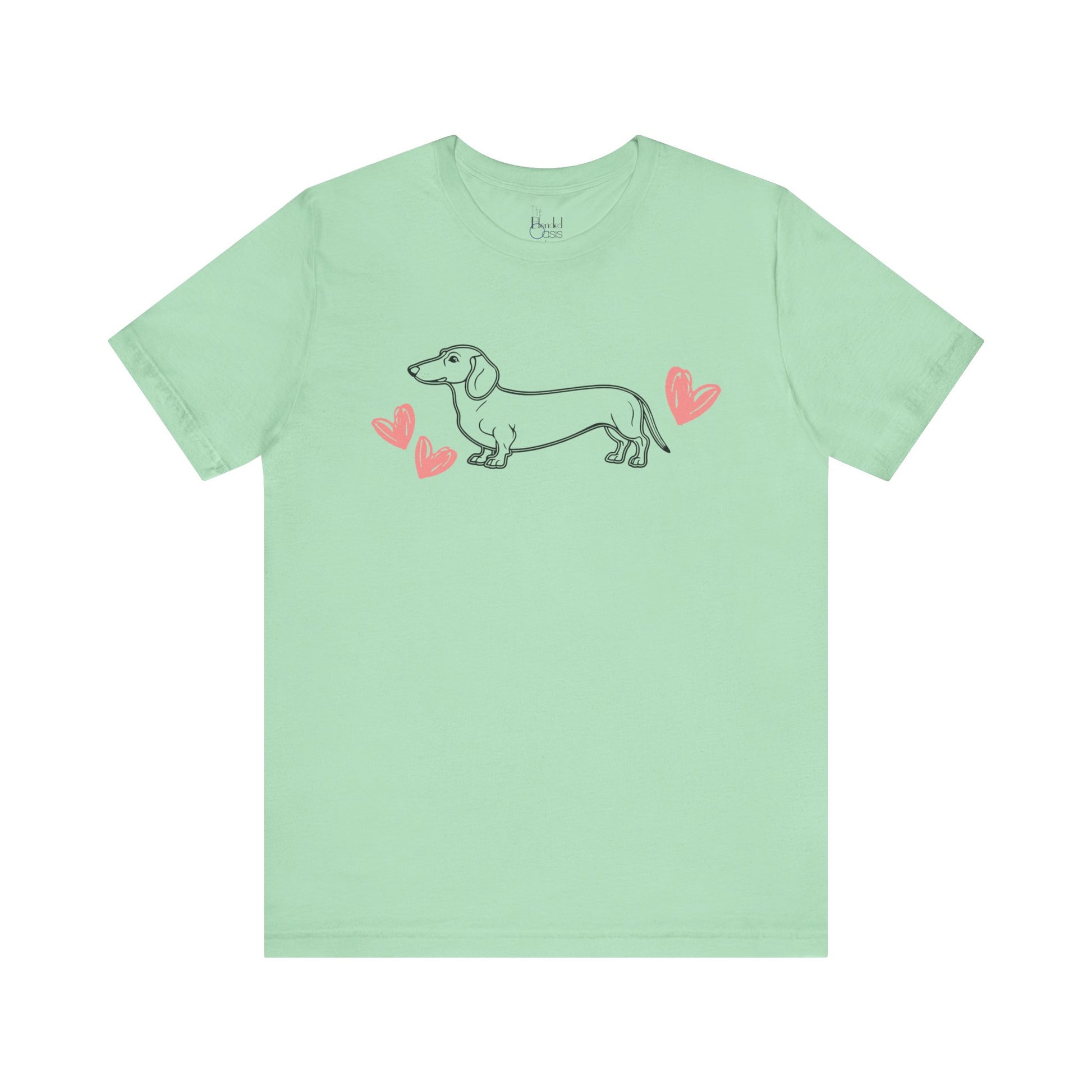 Celebrate the quirky charm of Dachshunds this Valentine’s Day! This adorable shirt features a whimsical design that captures the spirit of your lovable wiener dog. Perfect for dog lovers, pet parents, and Doxie enthusiasts. Give it as a gift or wear it yourself to spread the love!