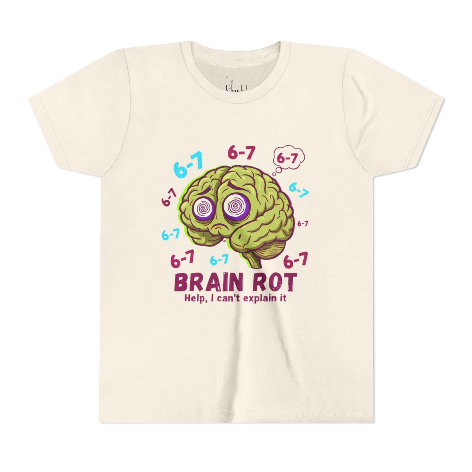 Youth Tee — "Brain Rot" Funny Cartoon Brain Kids Shirt (6-7, Help I Can’t Explain It)